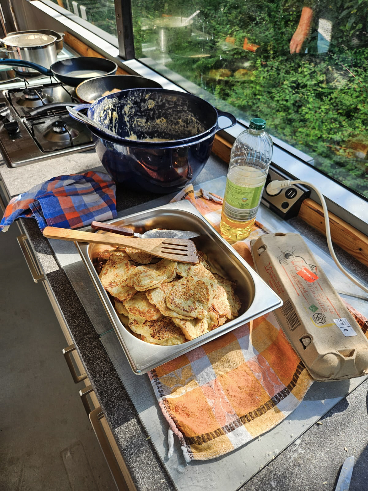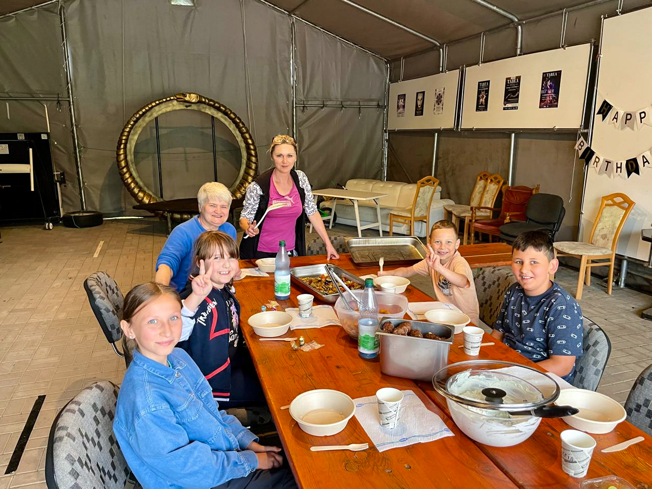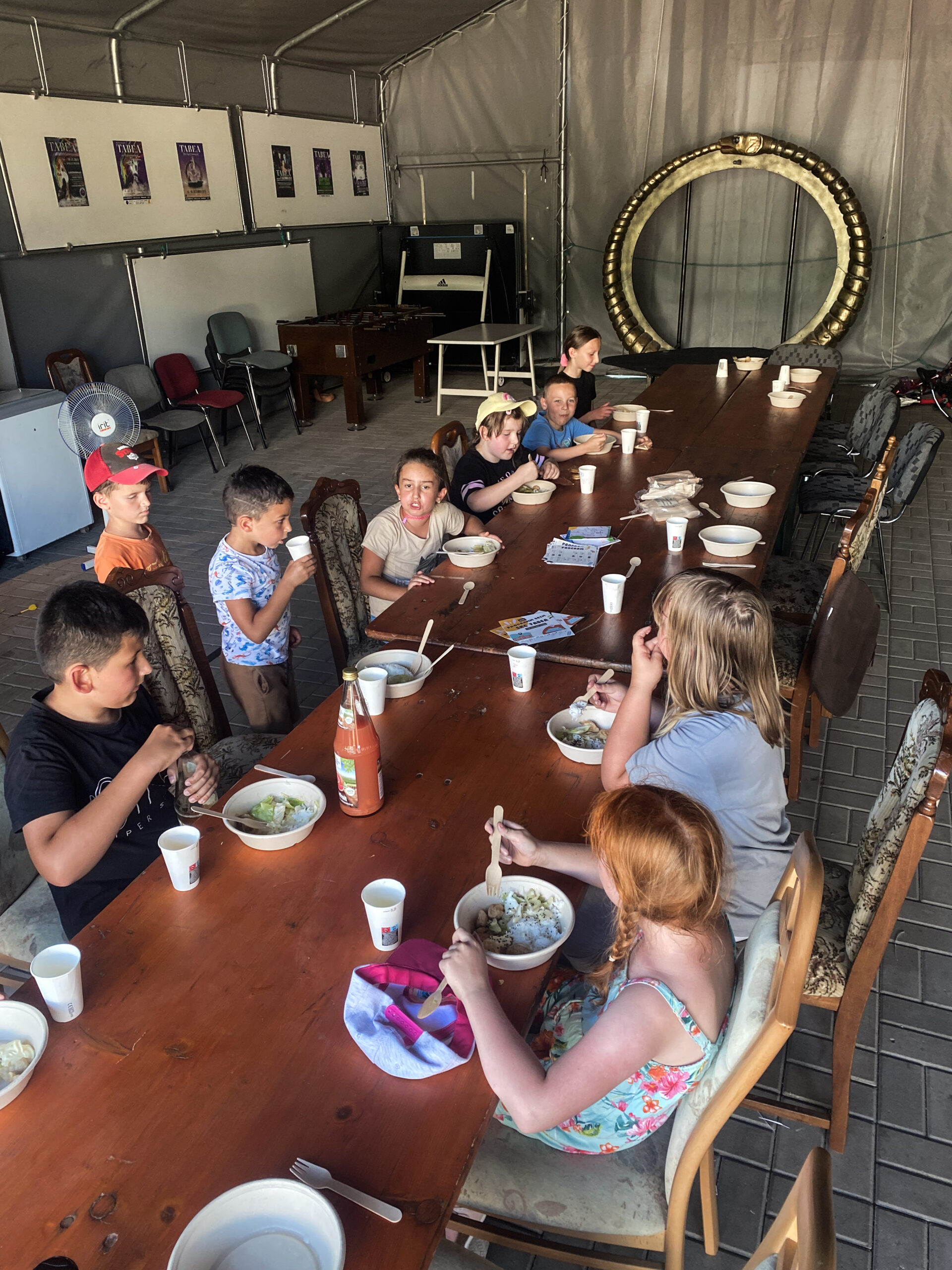 Nach den Aktivitäten gab es immer ein gemeinsames Essen, bei dem die Kinder ihren Nachmittag revue passieren lassen konnten. Das vielfältige kulinarische Angebot, das von japanischer und ukrainischer Küche bis hin zu Nudeln und Pfannkuchen reichte, war bei den Kindern sehr beliebt und rundete die erlebnisreichen Tage perfekt ab.