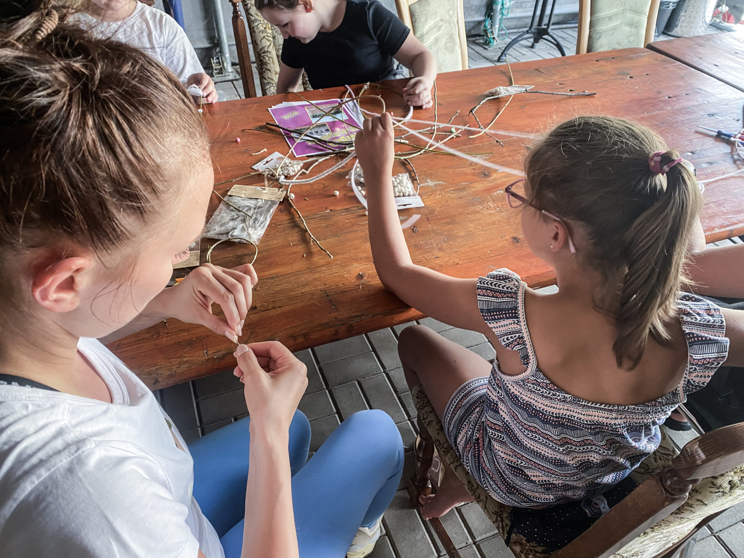 Am letzten Ferienprogrammtag konnten die Kids ihre eigenen Traumfänger aus Naturmaterialien basteln. Jeder Traumfänger hatte etwas ganz Besonderes. Während der Bastelzeit wurde viel gequatscht und natürlich Musik gehört.