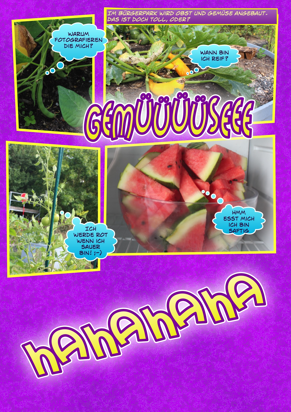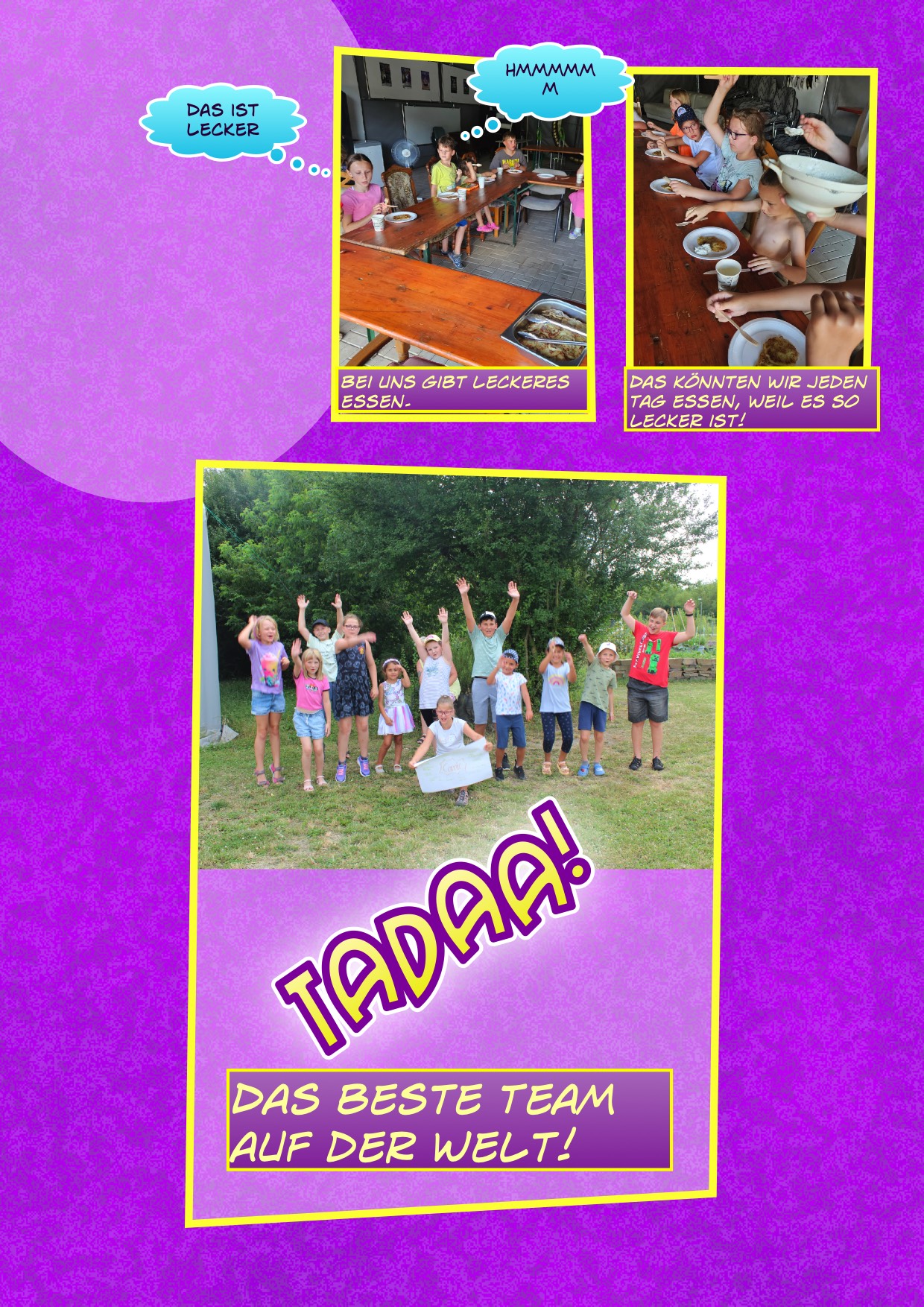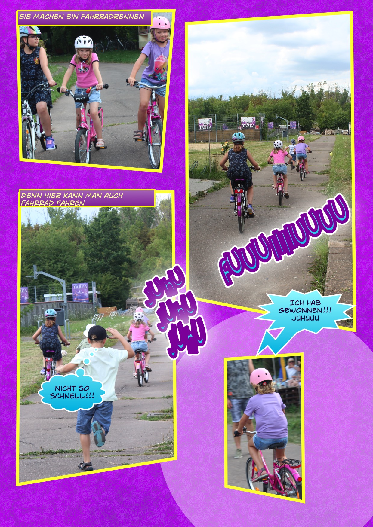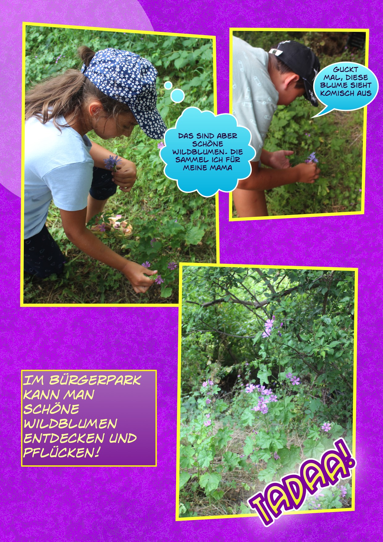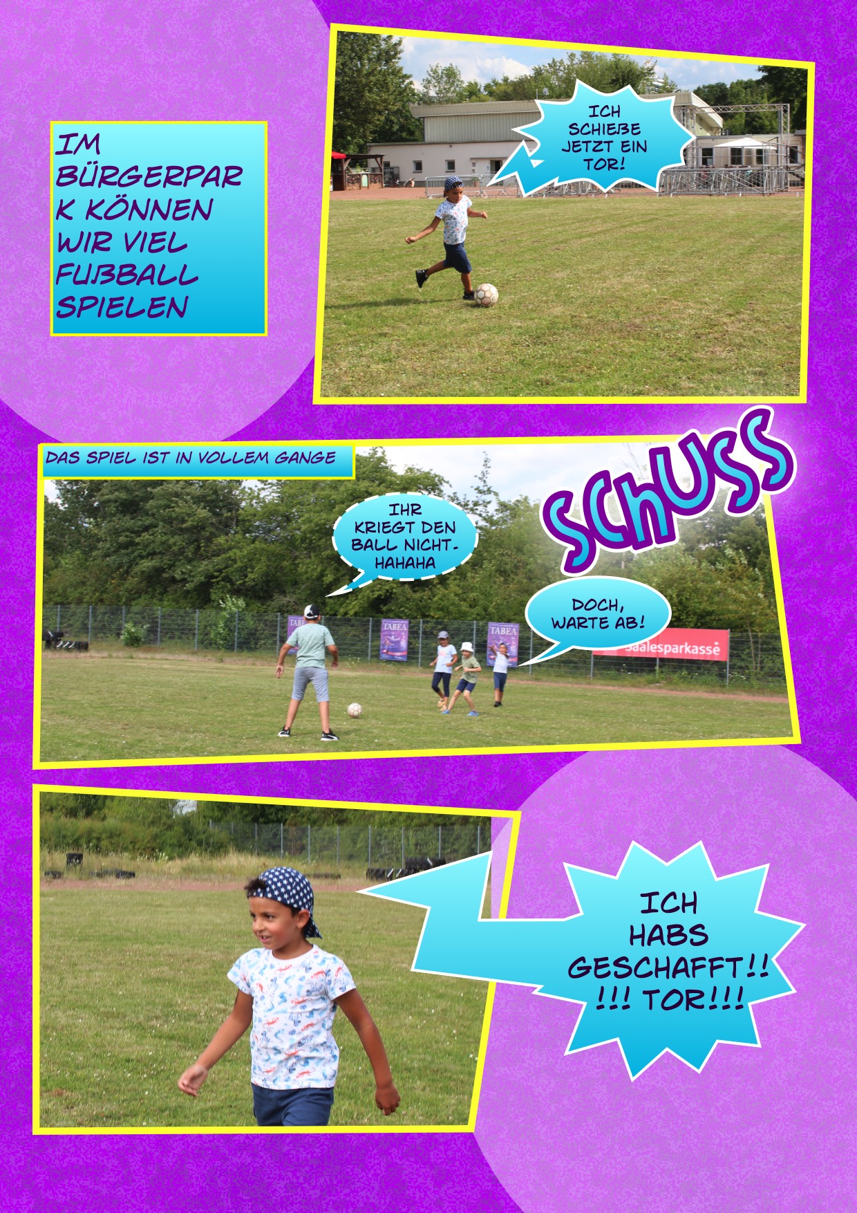 Ein weiteres kreatives Highlight war die Erstellung eines Comics. Die Kinder erfanden ihre eigene Geschichte und entschieden sich schließlich dafür, etwas über den Bürgerpark und TABEA zu erstellen. Sie machten Fotos die später in einem Computerprogramm zu einem Comic zusammengefügt wurden. Ein tolle Erinnerung, die jedes Kind mit nach Hause nehmen durfte.