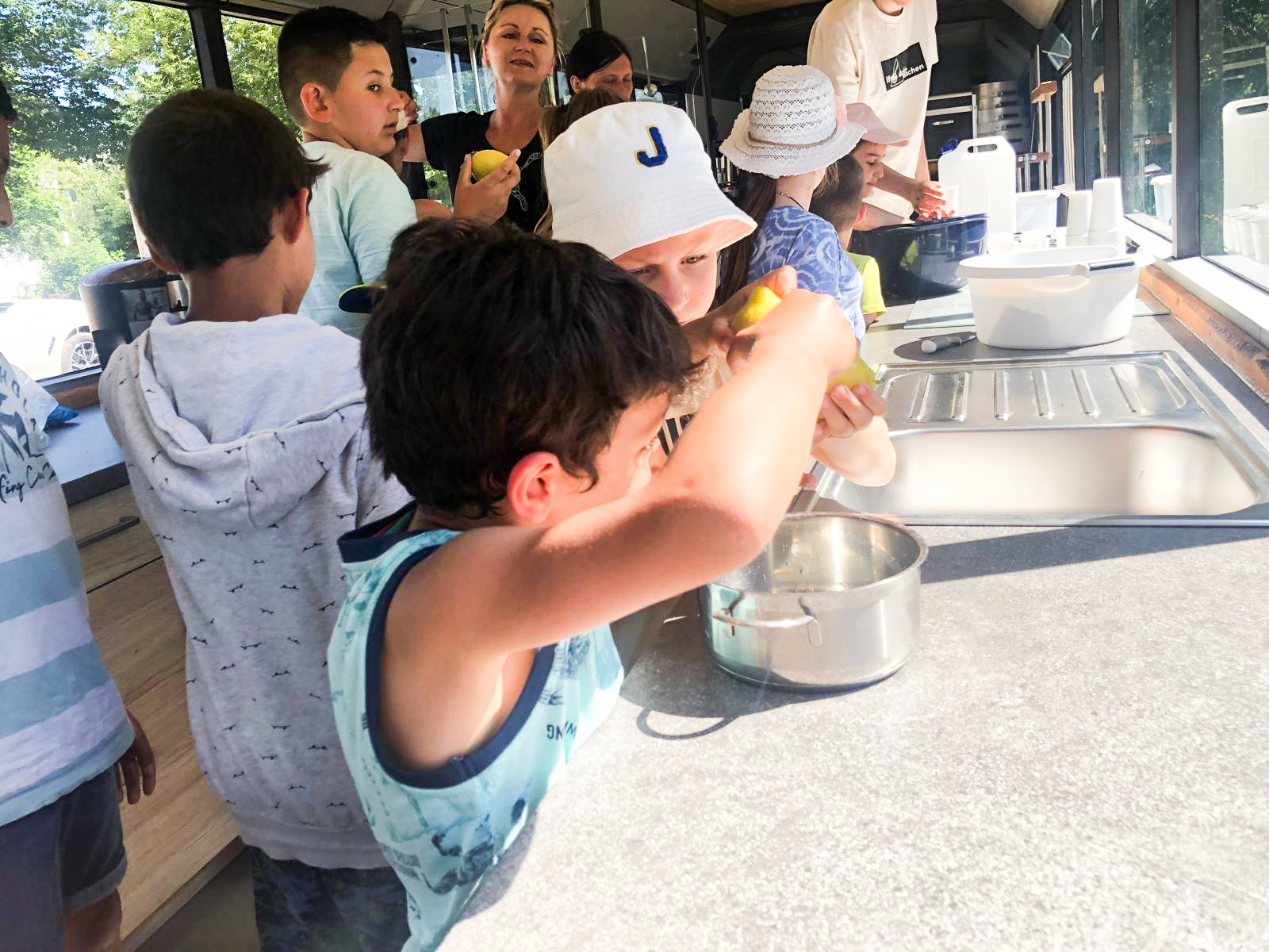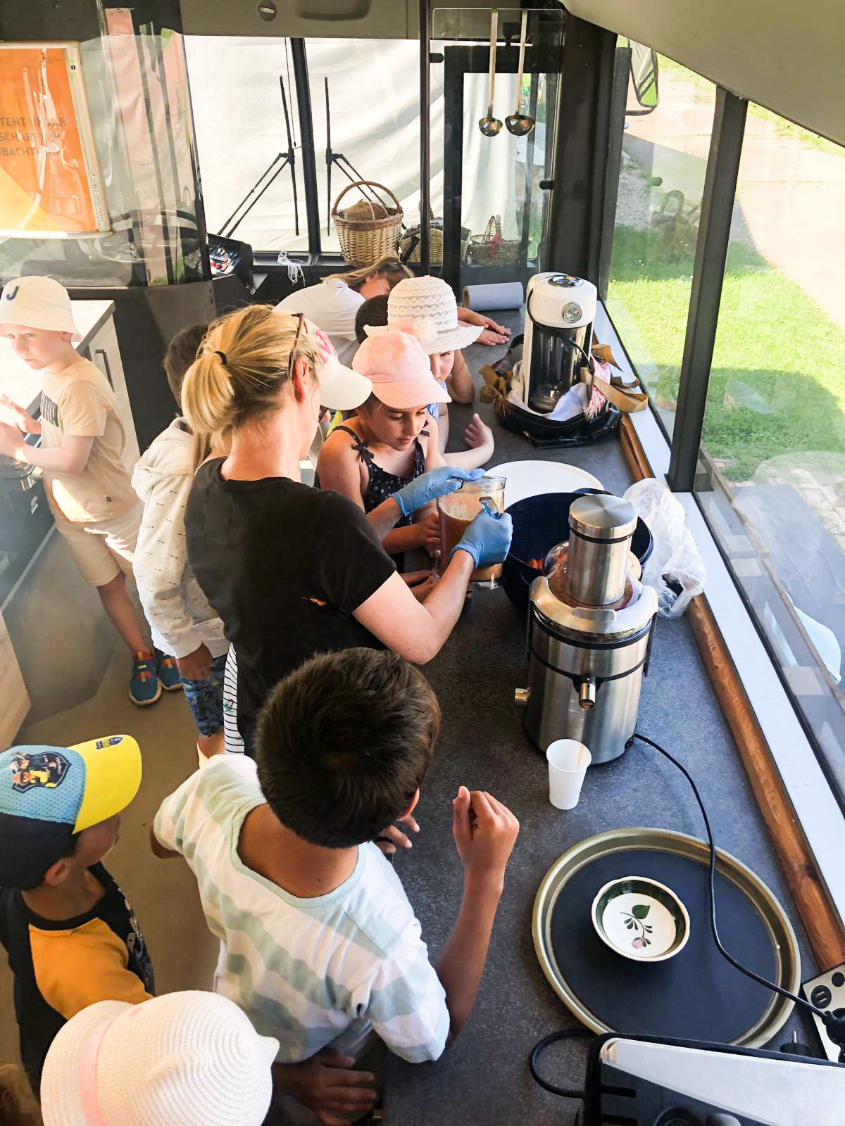 Kochen in einer normalen Küche kann jeder. Unsere Kids durften in unserem tollen Kochbus kochen. Sie hatten die Möglichkeit unter Anleitung selbst leckeren Frucht-Joghurt-Eis aus Früchten wie Bananen, Himbeeren und griechischen Joghurt zuzubereiten. Zu Trinken gab es Fruchtsaft frisch aus dem Entsafter.