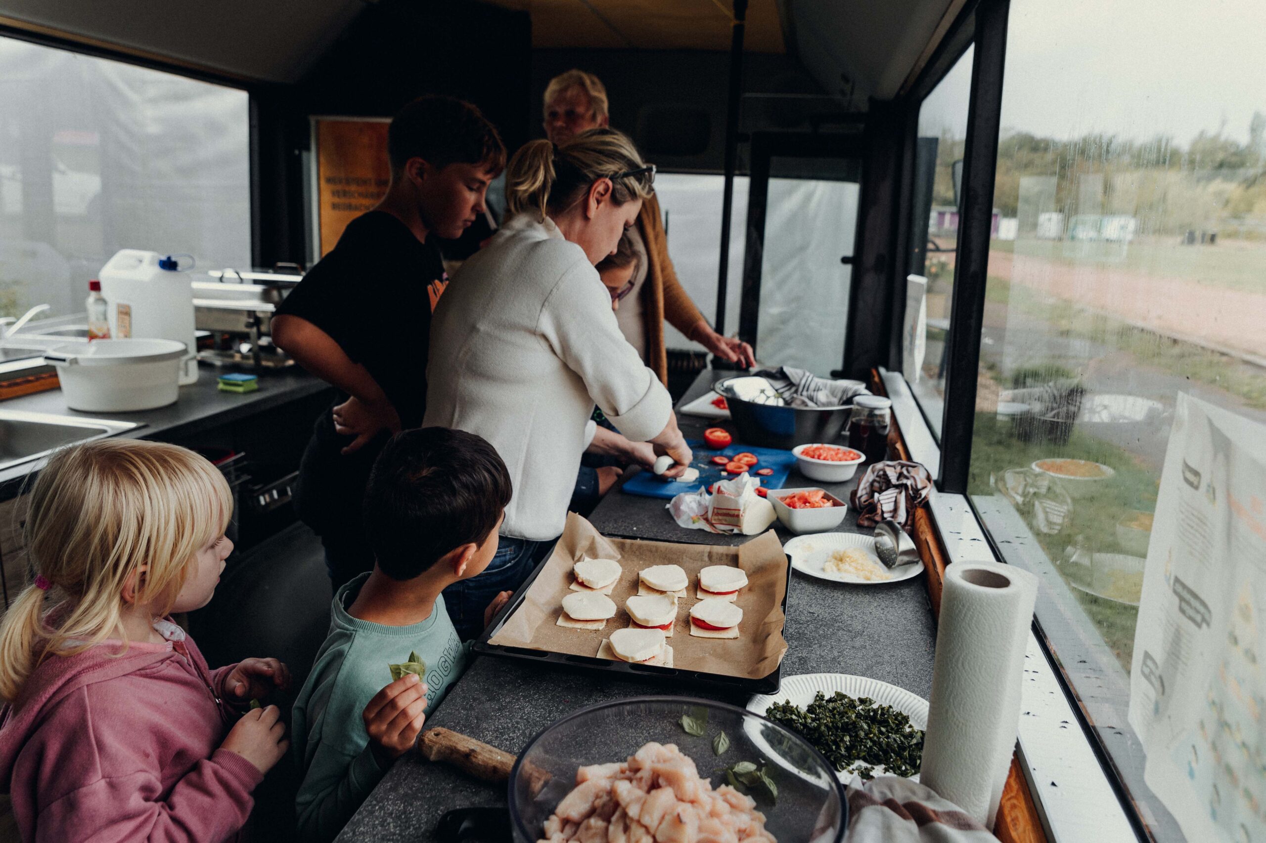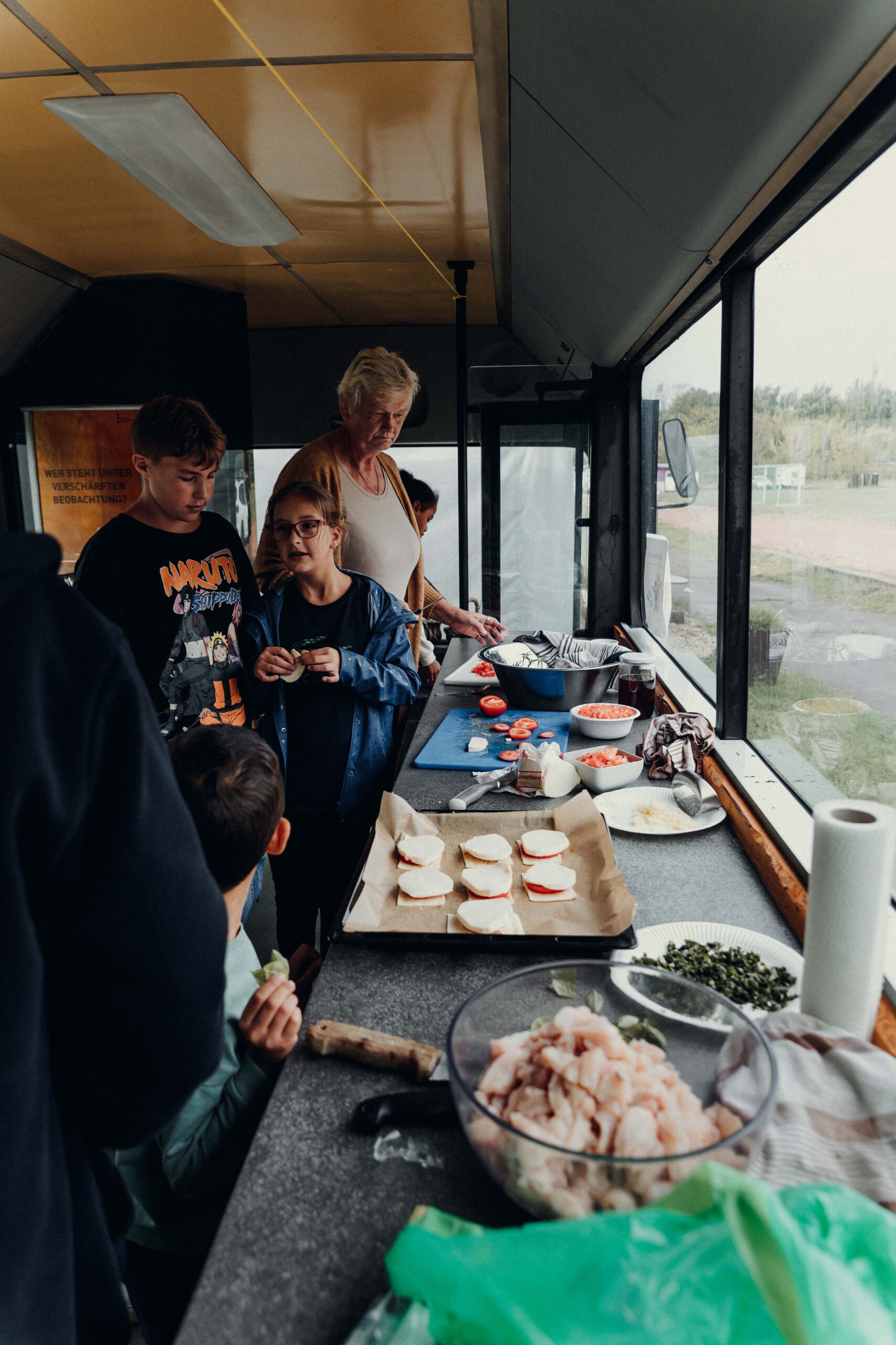 Seit Juli führen wir regelmäßig Dienstag unser besonderes Kochprojekt „Tafel deck dich“ durch, das vom Deutschen Kinderhilfswerk e.V. gefördert wird. In unserem märchenhaften Kochbus im TABEA Bürgerpark steht gesunde, ausgewogene Ernährung ohne Zusatzstoffe im Mittelpunkt. Kinder und Eltern bereiten gemeinsam frische Gerichte zu, wobei die selbstgepflückten Kräuter aus unseren Hochbeeten den Speisen einen natürlichen Geschmack verleihen. Das Projekt zeigt, dass es nicht schwer ist, eine gesunde Ernährung umzusetzen. Die Kinder werden aktiv in die Planung und die Zubereitung der Gerichte einbezogen.